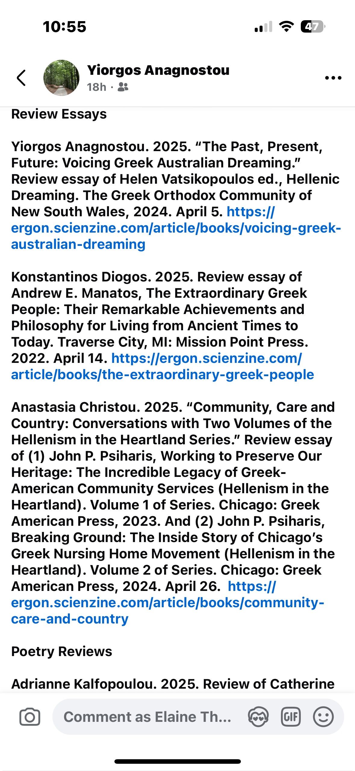 Thank you to Professor Yiorgos Anagnostou, editor of Ergon Greek American Arts & Letters magazine for including a review of the "Hellenism in the Heartland" series by Anastasia Christou in their "2025-Year in Review" edition!